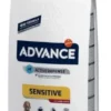 ADVANCE CANINE ADULT SENSITIVE SALMON ARROZ 12KG es un alimento seco especialmente formulado para perros adultos con sensibilidades alimentarias. Este producto se destaca por su cuidadosa selección de ingredientes que promueven la salud y el bienestar de tu mascota, asegurando una nutrición completa y equilibrada.